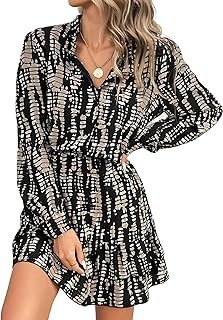 Women’s Western Shirt Dress | Long Sleeve Printed Mini Dress with Elastic Waist | Casual Button Down Short Dresses