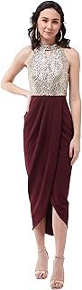 Be the first to review “Women’s Wine Halter Neck Sleeveless Solid Embellished Midi Dress” Cancel reply